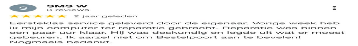 Bij Intra-ICT staat klanttevredenheid voorop. Wij zijn trots op de positieve feedback die we van onze klanten ontvangen. Bekijk hieronder enkele van de Google-reviews waarin onze klanten hun ervaringen met onze reparatie- en ondersteuningsdiensten delen.
